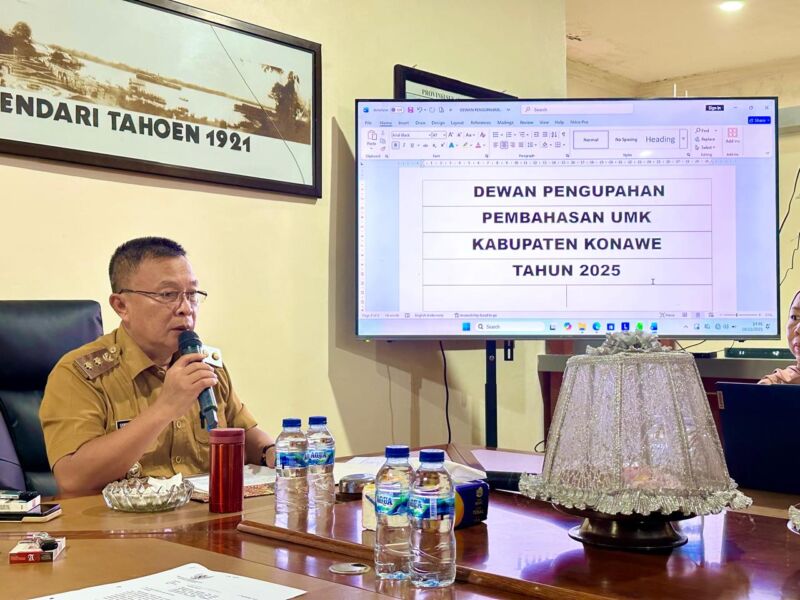 Ia menjelaskan, UMP Sultra tahun 2025 sebesar Rp3.073.511. Berdasarkan data pertumbuhan ekonomi, inflasi, produktivitas tenaga kerja, kondisi ketenagakerjaan, hingga kemampuan dunia usaha—Dewan Pengupahan Konawe menghitung UMK sementara di angka Rp3.140.877.