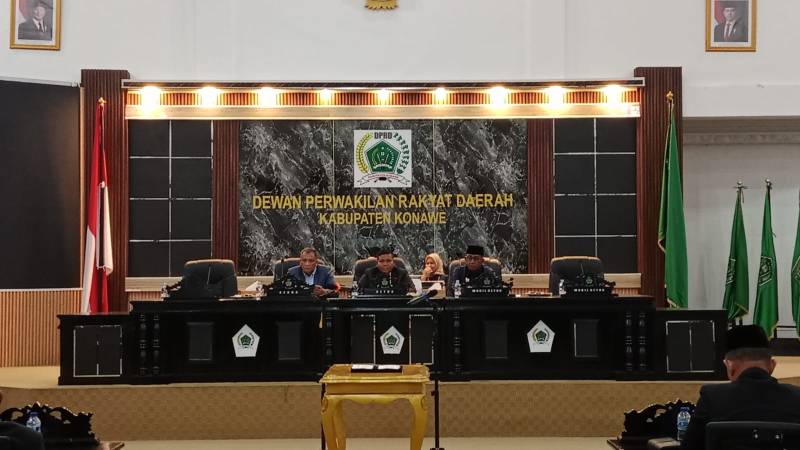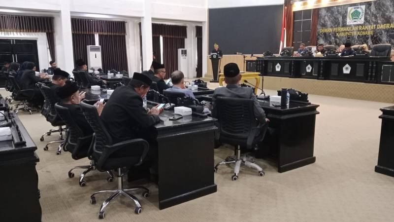 Rapat paripurna yang digelar di Ruang Rapat Gedung H. Abd. Samad itu dipimpin langsung Ketua DPRD Konawe, I Made Asmaya, S.Pd, MM, didampingi Wakil Ketua Nuryadin Tombili, ST. Hadir mewakili Bupati Konawe, Sekretaris Daerah (Sekda) Dr. Ferdinand, SP, MH, beserta jajaran kepala OPD dan Forkopimda.