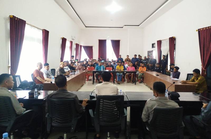 Suasana rapat dengar pendapat (hearing) antara puluhan perwakilan sopir dump truk dan Komisi II DPRD Konawe di Ruang Gusli Topan Sabara.