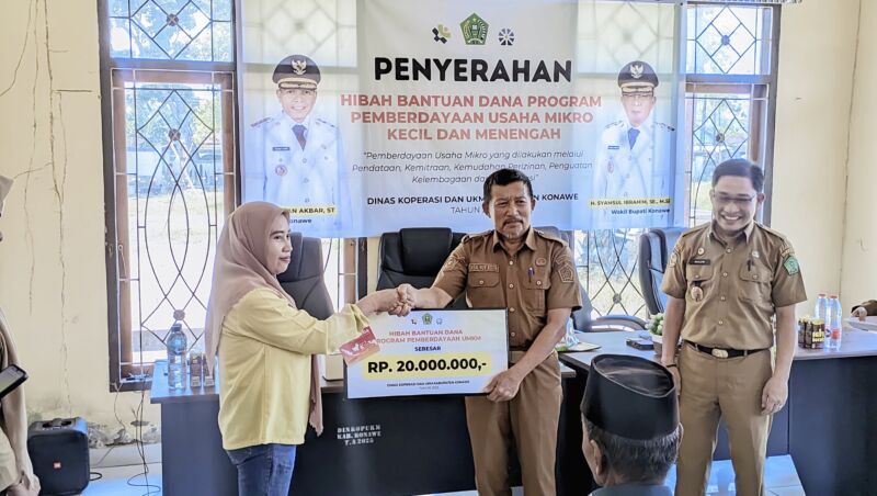 Sebanyak 17 kelompok pelaku Usaha Mikro, Kecil, dan Menengah (UMKM) dari 8 kecamatan di Kabupaten Konawe menerima dana hibah program pemberdayaan dari Pemerintah Kabupaten (Pemkab) setempat. Penyaluran bantuan ini merupakan bentuk komitmen konkret Pemkab Konawe dalam mendongkrak ekonomi kerakyatan dan memperkuat daya saing pelaku usaha lokal di tengah persaingan pasar.