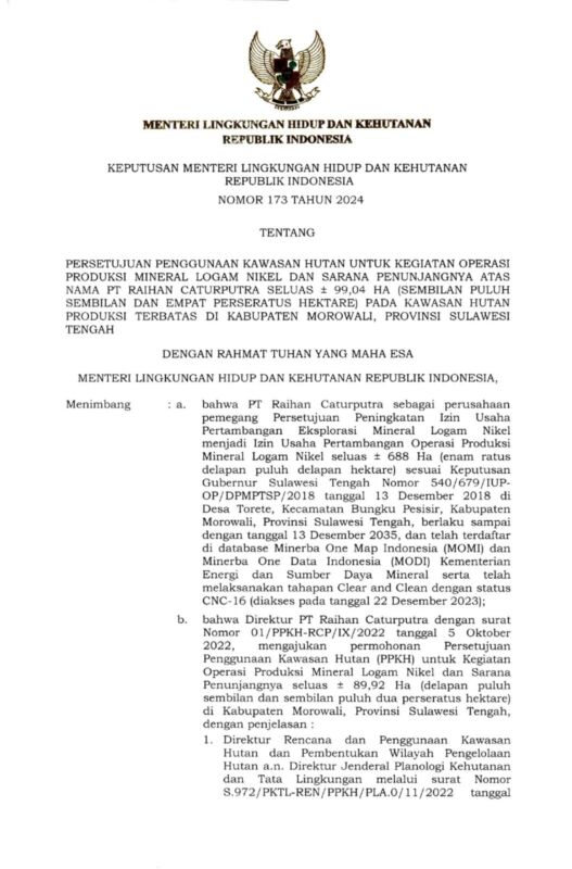 Ketentuan tersebut diperkuat oleh Undang-Undang Nomor 11 Tahun 2020 tentang Cipta Kerja serta Peraturan Pemerintah Nomor 23 Tahun 2021 tentang Penyelenggaraan Kehutanan. Perusahaan telah memperoleh PPKH secara sah dari pemerintah sebagai dasar kegiatan operasionalnya.
