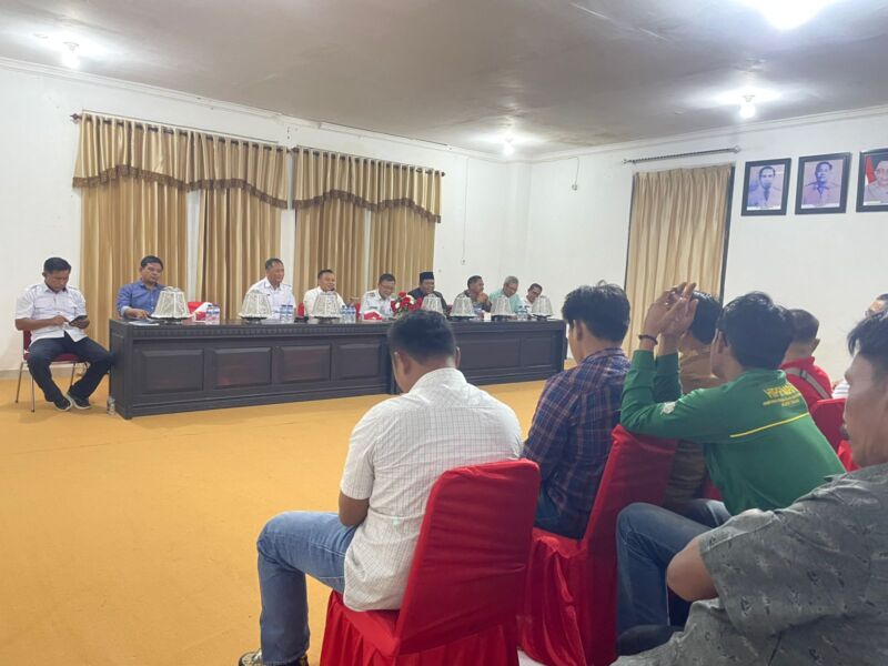 Suasana rapat yang dihadiri jajaran Forkopimda, OPD, manajemen perusahaan, dan puluhan perwakilan warga Routa. Semua pihak duduk sejajar — mencari titik temu agar investasi membawa manfaat nyata, bukan sekadar janji.