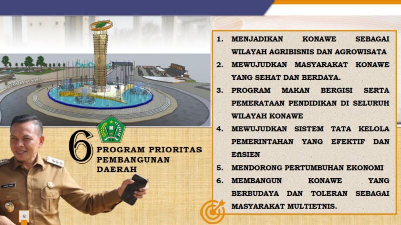 Untuk mengatasi masalah ini, pemerintah daerah menetapkan visi “Konawe yang Berdaya Saing, Sejahtera, Adil, dan Berkelanjutan”. Visi ini diwujudkan melalui enam misi strategis: