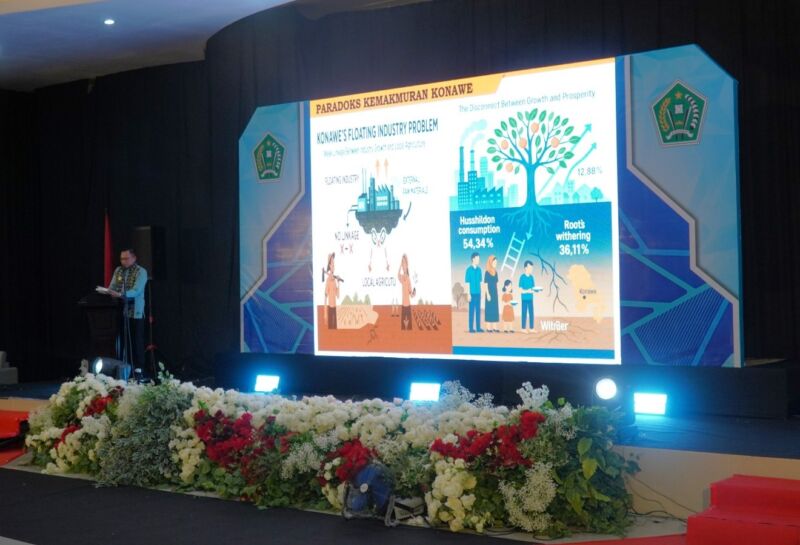 Fakta lain yang mengkhawatirkan adalah tingginya ketergantungan Konawe pada sektor industri pengolahan. Lebih dari 75% pertumbuhan ekonomi disumbang oleh industri yang berorientasi ekspor. “Jika terjadi penurunan ekspor sebesar 20%, ekonomi kita bisa terkontraksi hingga 7%,” paparnya. Simulasi yang lebih ekstrem bahkan menunjukkan potensi penurunan pertumbuhan hingga 60% jika krisis global semakin dalam.